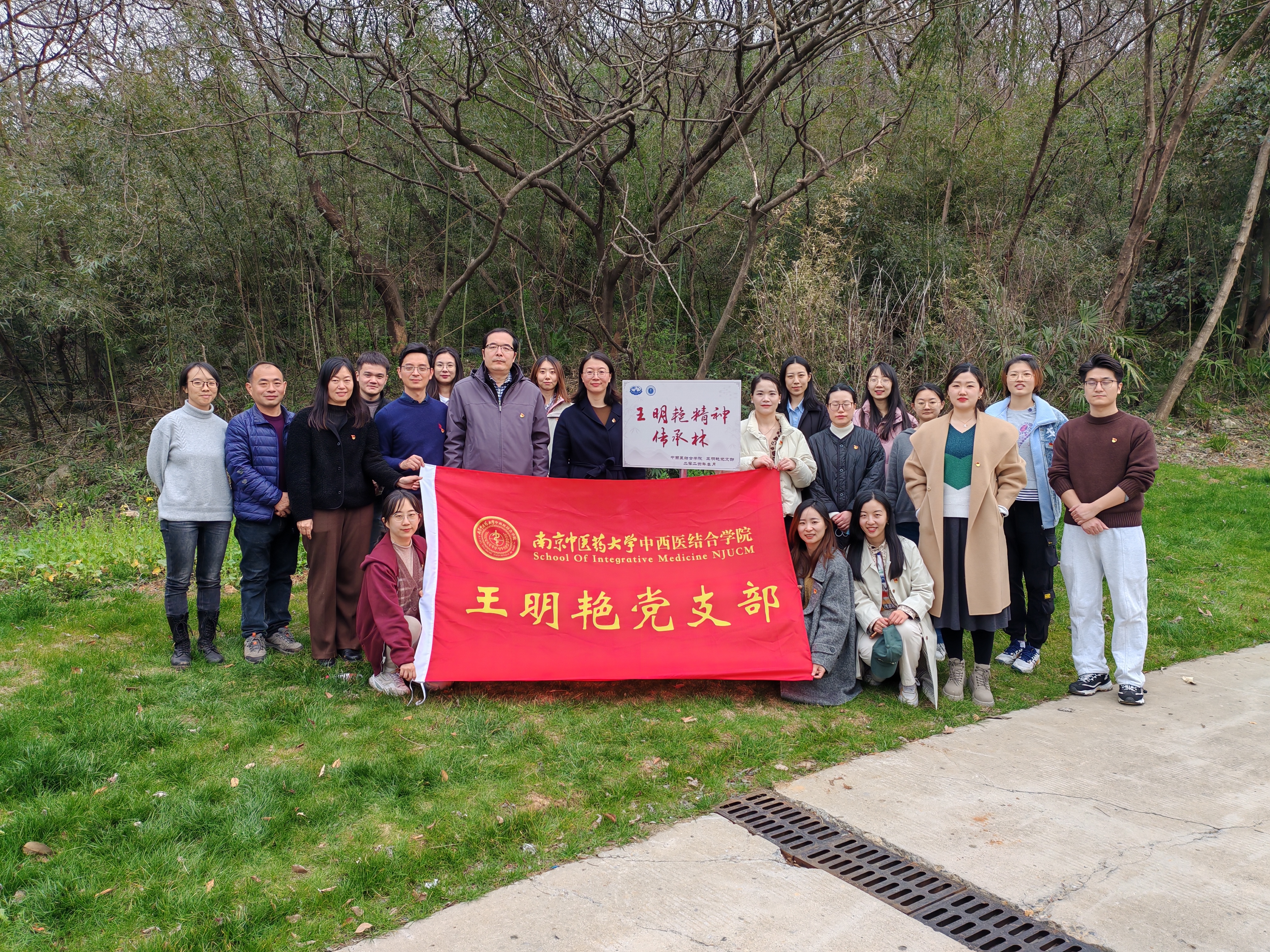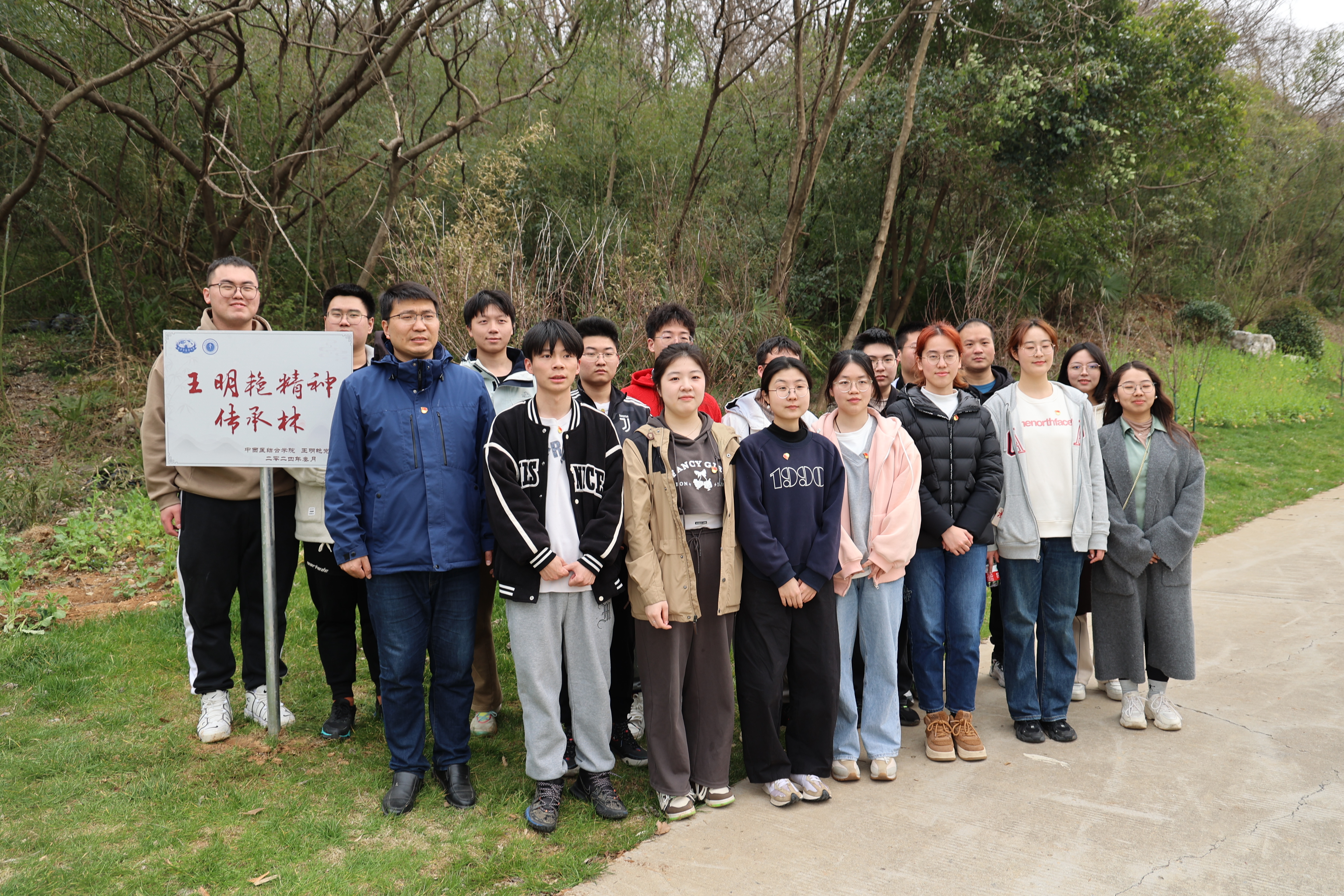 出席植树活动的领导和师生党员共同栽种下二十六株樱花树,为美丽南中医和生态校园建设贡献力量。植树活动结束后,左言富、程革、周恩超、倪昊翔为“王明艳精神传承林”揭牌,希望通过传承林将“明艳精神”传递给每一位师生党员,激励大家爱校、爱岗、爱专业,在各自的工作、学习岗位上努力奋斗。