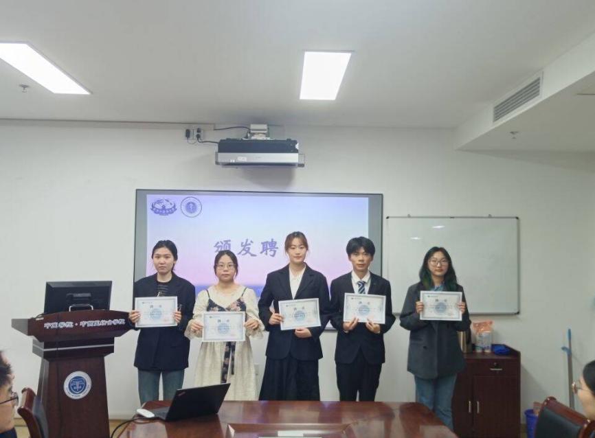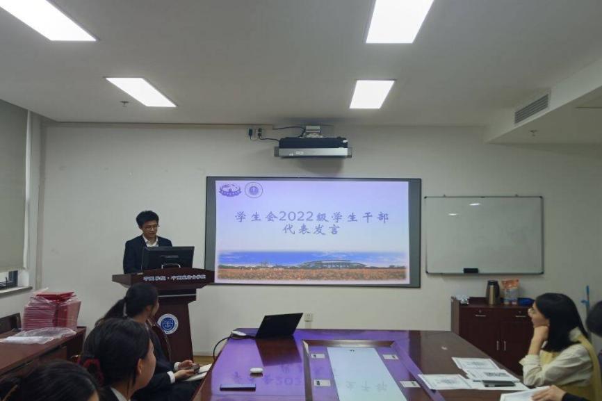 分团委2022级副书记史潇璇进行就职发言。她讲述了自己这一年多来在分团委的点点滴滴。她感谢分团委带来的机遇和挑战,也希望新一届分团委能够继续努力,共同创造分团委更好的明天。张艳梅老师为2021级分团委员工骨干颁发聘书。
