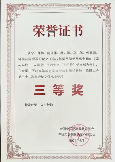 公司王明艳党支部撰写选送的论文《高校基层品牌党组织创建的探索与实践——以william威廉英国官网“王明艳”党支部为例》获三等奖。