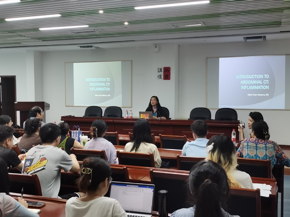 CT是通过计算机处理扫描得到的数据生成身体内部横断面、冠状面或矢状面的高分辨率图像,腹部CT是一项临床常用检查,用于疾病的诊断。Marie助教为大家讲述腹部CT的多项病例,并引导师生进行热烈讨论。