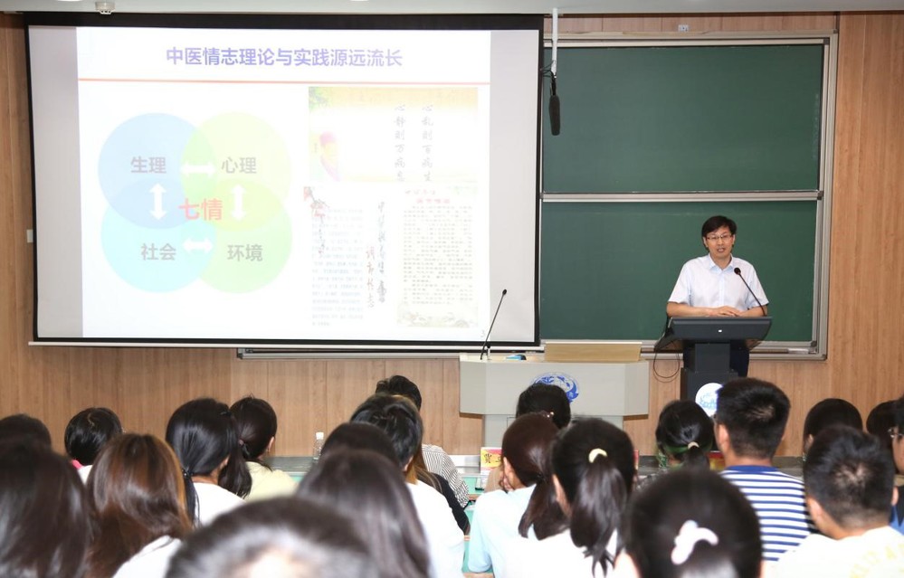 随后,贾立军经理为全体新生带来《中西医结合情志扶正范式探索》的主题讲座,开启2024年云翔书院系列专家讲座,他以情志冥想为主题,从冥想的理论与实践发展历程出发,介绍了冥想在中医理论体系中的重要地位,冥想在抗疫实践中的功效成果,冥想的效应机制及调节情绪的作用以及冥想的未来科学发展规划。贾经理通过引人入胜的讲解,从知识性、实践性、科学性和探究性等方面启迪同学们从中西医结合角度进行思考,构建中西医思维模式,提高认知水平,建立专业自信。