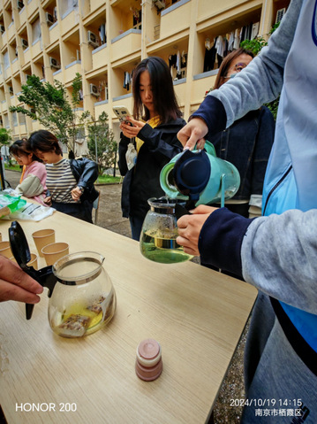 药茶品鉴——志愿者为南师大同学们准备了清肝明目和健脾除湿的药茶,在询问完同学们相关身体健康问题后,向他们推荐了合适的药茶,并在他们喝茶的过程中畅谈。志愿者们了解到,很多同学由于长期久坐学习,缺少运动,用眼过度,并有头身困重和眼睛干涩等状况,健脾除湿茶和清肝明目茶可以很好地帮助他们缓解这类症状。