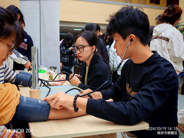 测量血压——公司志愿者为每位到来的南师大同学们耐心测量了血压,并介绍了血压知识,大多数同学们的血压都在正常范围内,少部分同学的血压偏高,志愿者们也根据他们的血压状况,给出了饮食运动方面的相关建议。