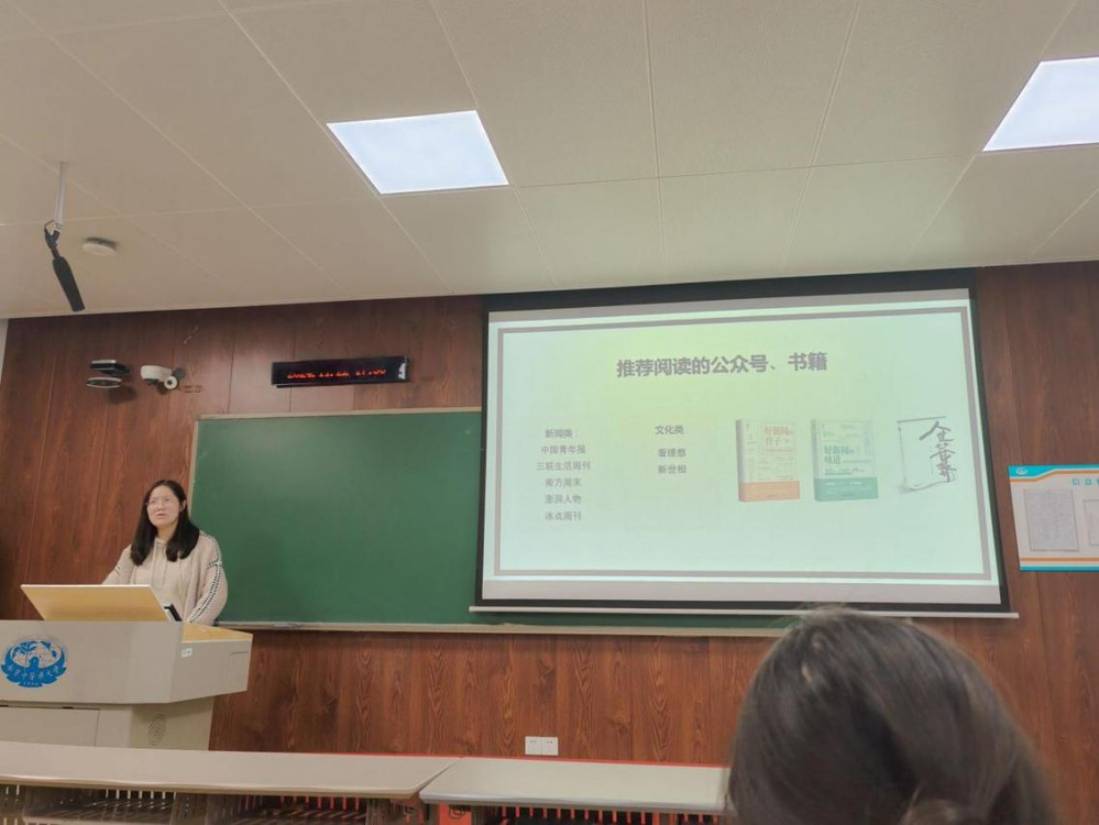 最后,陈老师针对如何提高推送制作技能的问题,为同学们提出几点建议,并推荐了可供阅读学习的新闻类、文化类公众号与书籍,如《中国青年报》和《看理想》等,使同学们对推送制作的理解更加深入,希望同学们从中汲取经验,不断提升自身能力水平。