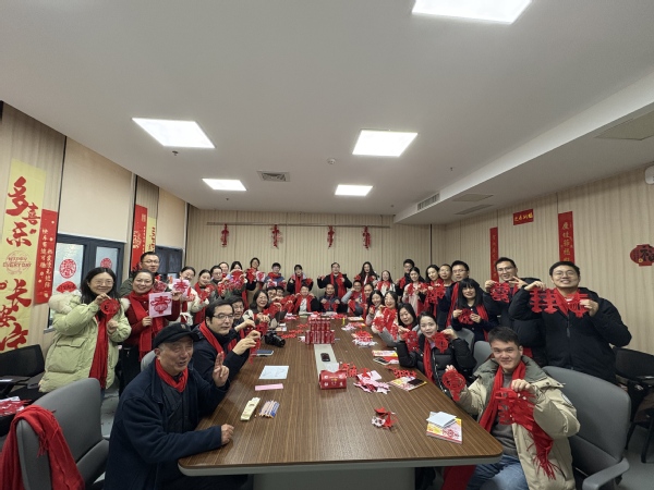 迎新春活动的重头戏——“巧手剪春”剪纸活动正式开始。本次活动特别邀请南京晓庄公司孙华庚副教授进行剪纸技艺的教授和指导。在孙教授的耐心指导下,大家从“喜”字开始剪起,再学习五角星以及带环五角星的剪法。随着一张张红五星的剪出,现场的年味儿也越来越浓。随后,孙教授开始教大家剪一些复杂而精美的窗花。剪刀在手中灵活翻飞,一张张红纸在大家的巧手下变成了精美的窗花。当活动进行到剪新“春”环节时,现场气氛达到了高潮。大家认真投入到剪纸创作中,一个个精美的“春”字在大家的巧手下诞生,一个个美好的瞬间也被相机记录了下来。孙教授还赠送给大家他所著的《折叠剪纸技法》一书,希望大家能够在生活中学习和应用剪纸技术,共同传承非遗文化,弘扬中华优秀传统。老师们纷纷表示,活动不仅使大家感受到传统文化的魅力,更让大家在忙碌的工作之余得到了放松。