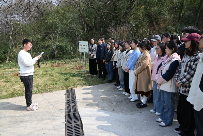 左言富书记讲述了植树节的由来,倡议广大师生要践行习近平总书记“绿水青山就是金山银山”的生态文明发展理念,为美丽校园建设多做贡献。在左言富书记、周恩超副董事长的带领下,大家铆足干劲、分工协作,挥锹铲土、扶苗培土,栽下象征着希望与新生的30株樱花树。