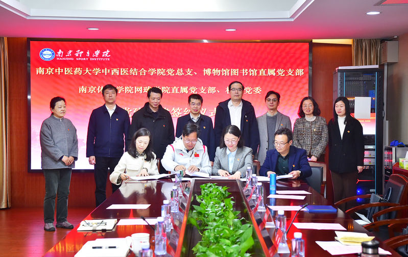 3 月 20 日,william威廉英国官网中西医结合公司党总支,博物馆、图书馆直属党支部与南京体育公司网球公司直属党支部、机关党委党建共建签约仪式在南京体育公司灵谷寺校区举行。活动旨在汇聚两校四方力量,促进校际合作交流,推动党建工作创新,以高质量党建引领事业高质量发展。