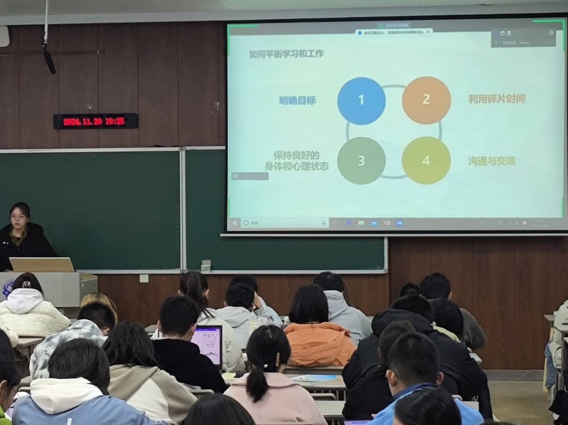 遴选优秀学子组建“研路导师团”,开展考研经验分享专题分享会,针对考研常见问题和难点,进行详细讲解。通过传帮带的形式,助力一届届学子顺利升学。