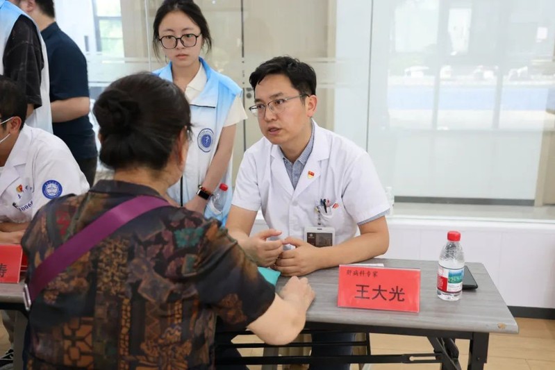 7月3日上午,员工实践团志愿者与王明艳第一、二党支部教师前往盐城市中医院开展系列活动。临床学系刘丽娜教授、裴可博士、严如根博士、韩智涛博士、宋宇尘博士等五位教师与盐城中医院肝病科主任王大光、肺病科副主任蔡元培及脑病科副主任王飞在医院门诊大厅开展义诊活动,为患者提供基础诊疗、健康咨询,开展刮痧、耳穴埋籽、拔火龙罐中医特色疗法体验。此次义诊既让患者享受到优质免费的医疗服务,也为员工搭建了“学中做、做中学”的实践课堂,让中医传统技艺在服务百姓健康中焕发新活力。