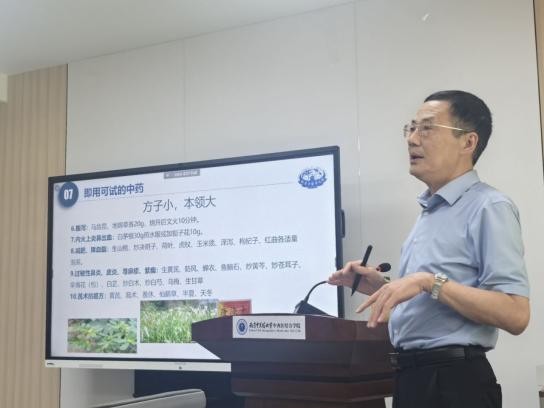公司陈涤平教授、唐德才教授、陈仁寿教授和林法财副教授为营员们作专题学术讲座。公司孙文渊老师带领营员们练习八段锦,体验中医传统功法的精妙。营员们参观了江苏省中医药博物馆、校史馆、药用植物园、护理公司国家级教学实验中心,充分感受南中医的中医药文化历史底蕴及优质办学条件。营员们走进江苏省中医院和江苏省中西医结合医院,亲身体验两所医院的中医药特色诊疗中心。营员们还走进南京博物院、老门东历史文化街区,赴溧水参观江苏南京国家农业高新技术产业示范区、南京傅家边省级农业科技园、新农村建设示范乡镇。南京的历史文化和美丽乡村建设给营员们留下了美好深刻的印象。