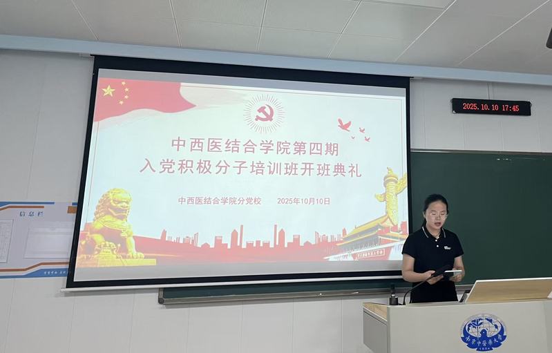 本期培训班班长王梓作为学员代表发言,她表示将珍惜学习机会,做好班级管理与服务工作,认真学习党的理论知识,严格要求自我,以实际行动争取早日成为一名光荣的共产党员,为中医药传承创新发展与民族复兴强国建设贡献青春力量。