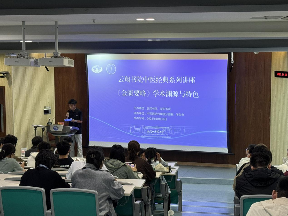 接着,毕教授从经典源流切入,剖析了《金匮要略》在“四大经典”中的定位及影响,展现《金匮要略》的独特魅力与价值。现场气氛热烈,同学们积极思考学习。参加讲座的同学们纷纷表示,此次活动让他们对中医经典有了更深入的认识。