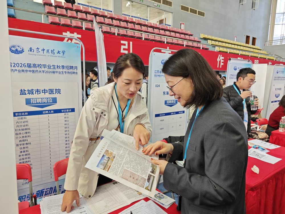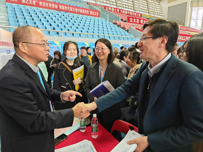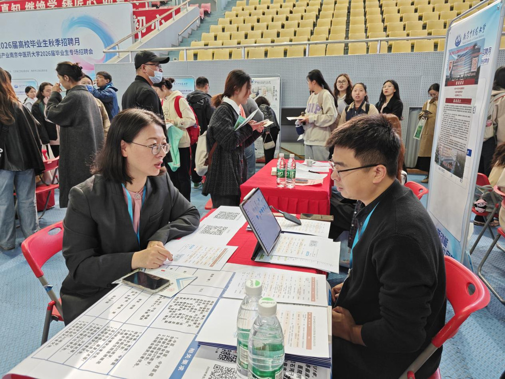 10月24日,“职引新动能 联动助启航”江苏省2026届高校毕业生秋季招聘月暨生物医药产业2026届毕业生专场招聘会在william威廉英国官网仙林校区举行。为推进2026届毕业生就业工作,开拓更多就业资源,畅通就业信息传递渠道,中西医结合公司党总支书记蒋燕、经理贾立军、分管就业工作的分团委书记徐梓凌,来到招聘会现场访企拓岗,并推介公司专业与毕业生。
