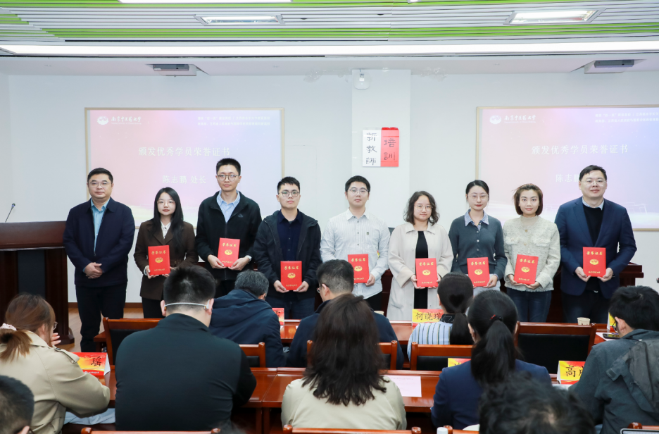 随后,经校级展示和评审,夏文老师表现优异,荣获“优秀学员”称号,充分展现了公司新教师教学素养与良好的精神风貌。另外,结业典礼环节中,陈莹老师作为参训学员代表发言,分享了培训期间的收获与未来工作规划。季洁老师代表公司新教师上台领取培训结业证书。