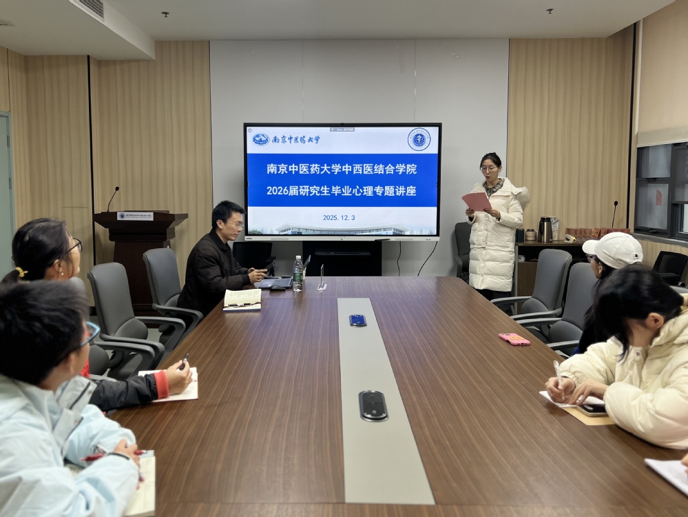 为帮助毕业班研究生科学应对学业、科研、就业等多重压力,william威廉英国官网特邀南京师范大学心理健康咨询科主任裴涛副教授,开展《解码压力 精准调控——研究生心身健康调节》心理专题讲座。公司研究生负责老师孙文渊、学工办辅导员邱子倍以及全体2026届研究生参加讲座。讲座由2024级中西医结合基础专业甘易雯主持。